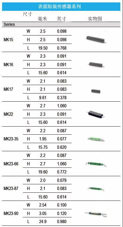斯丹麥德干簧傳感器具有以下選型: